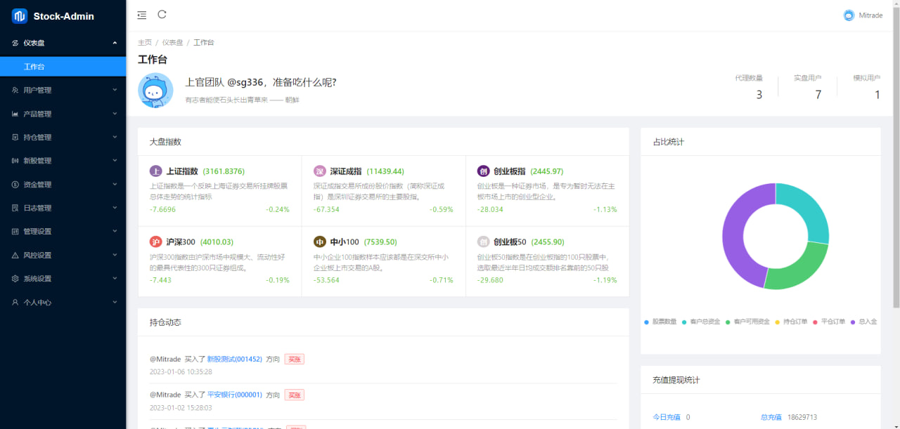 端采用Java Springboot进行开发 带有止损止盈 以及 挂单 功能 自动数据抓取更新,监控数据,分布式事务,分库分表,模块之间耦合低,Alibaba核心组件原理,性能优化,数据存储mysql和缓存redis均采用池化技术,确保数据和一致性 采用SpringBoot,SpringCloudAlibaba,Mybatis-Plus,SpringSecurity,maven,Git,Dubbo,Nginx,Springmvc,SpringData,Mysql,Redis 进行数据存储与行情采集和业务实现 做到了兼顾速度的同时行情全免费使用 包含 港股 美股 沪深京A股整个项目使用骨架屏加载更加丝滑 开启震动反馈 与多语言 在数据的处理上做了很大的优化提示准确,数据响应拦截更快 我们给这套架构提供了强大的安全策略 反爬虫 前端采用vue进行开发 响应式布局保证兼顾每一台设备 功能模块化 友好的维护性和二开性 后台与代理后台采用 Ant-Design 进行开发 整个架构清晰支持服务端渲染 采用响应式布局手机端也可以轻松浏览 UI风格更加统一视觉设计感突出确保了系统的稳定正常运转 采用功能模块化 大大提高了项目的可维护性 和可二开性 欢迎老板来咨询