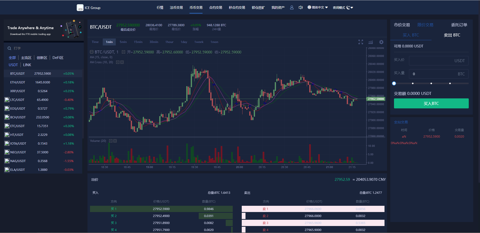 运营版海外伪交易所系统/微交易微盘系统/质押挖矿/虚拟币交易